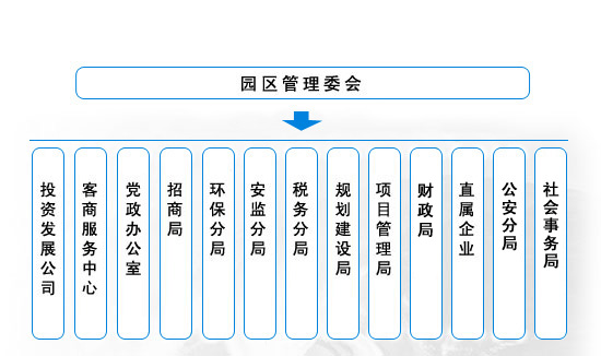 园区管委会为滨海县政府的派出机构,履行县级管理职能,工商、税务、环保、安监、国土、公安等职能部门在园区设立办事机构,实行一门办公和一条龙服务,全力为进区企业、投资客商提供最佳的投资发展环境。