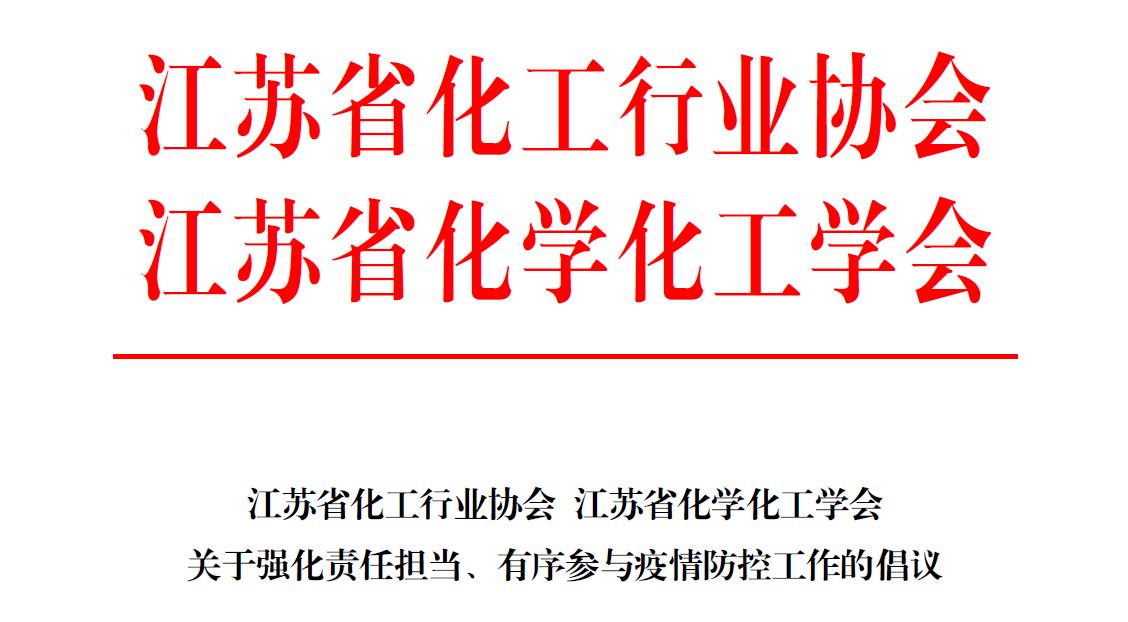 当下正处于新型冠状病毒感染的肺炎疫情防控工作的关键时期,党中央、国务院和省委、省政府高度重视。我省也已启动突发公共卫生事件一级应急响应,以坚决遏制疫情蔓延势头。为发挥行业力量,有序支持疫情防控工作,江苏省化工行业协会、江苏省化学化工学会现向会员单位、全省化工行业发出如下倡议: