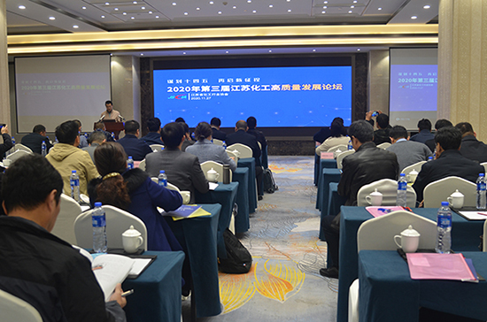 2020年11月27日,由江苏省化工行业协会举办的“谋划十四五,开启新征程”―2020年第三届江苏化工高质量发展论坛在南京珍宝假日饭店举办。本次论坛是在“十三五”收官,“十四五”启航的重要历史时刻,在江苏化工产业经过多年调整、提升,正进入转型升级实现高质量发展的关键时期召开的,与会发言嘉宾聚焦“发展和安全”,在“谋划十四五”的大主题下,从多个角度进行解读和研判。论坛由江苏省化工行业协会副会长兼秘书长马建平主持,来自相关政府部门、业界专家、协会理事、监事(代表)、协会会员单位、相关化工园区、企事业单位代表的200余位代表出席。