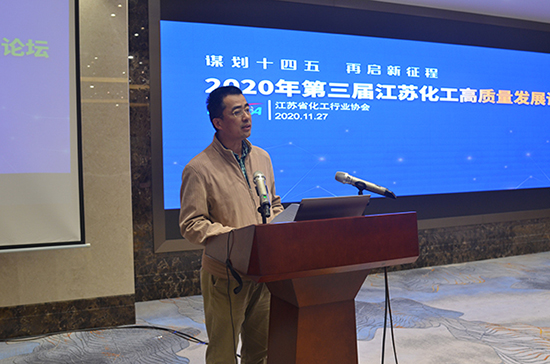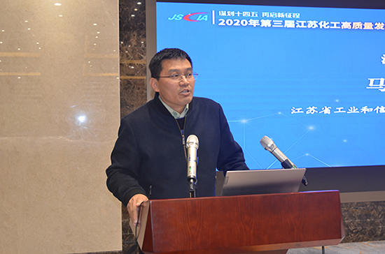 江苏省工业和信息化厅材料工业处调研员马勇良作题为“江苏化工行业产业政策与监管重点与方向”的报告