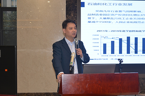 江苏省生态环境厅市县工作处调研员贺震作题为“江苏化工行业环保监管重点与方向”的报告