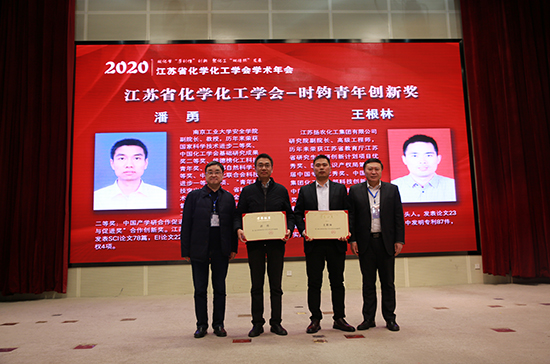 年会上,首先向南京理工大学吕春绪教授颁发了第三届江苏化学化工学会-时钧化工成就奖获奖证书,向扬州大学韩杰教授、江南大学董玉明教授颁发了第三届学会-戴安邦青年创新奖奖获奖证书,向南京工业大学潘勇教授、江苏扬农化工集团有限公司王根林高级工程师颁发了第三届学会-时钧青年创新奖获奖证书,向扬州大学等11家单位颁发了学会首届科学技术奖一、二、三等奖奖获奖证书,向科普、高校、大气化学及污染治理、富碳材料与器件颁发了2020年度先进专业(工作)委员会,向南京工业大学胡永红、南京师范大学张俊松、中石化扬子石化公司王红梅颁发了2020年度先进工作者奖获奖证书。