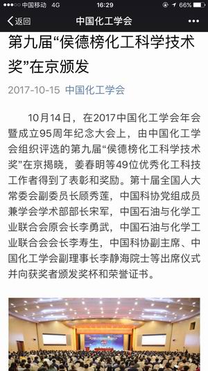 江苏化工网 江苏省化学化工学会 会员动态 南京工业大学王志荣获中国化工学会侯德榜化工创新奖