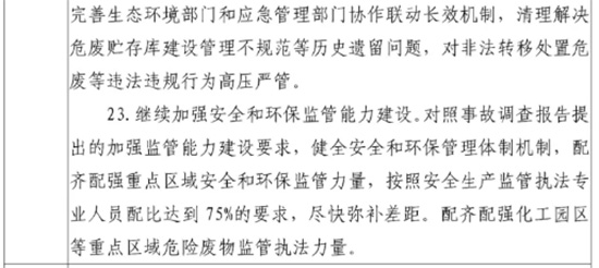 11起事故中有2起危化品事故――天津港“8・12”事故、江苏响水天嘉宜公司“3・21”事故。下面来看看这两起事故的整改措施落实情况。