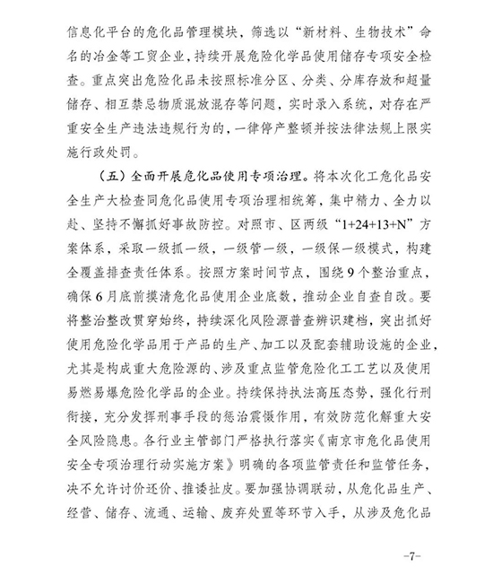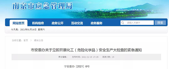 南京市安委办关于立即开展化工(危险化学品)安全生产大检查的紧急通知