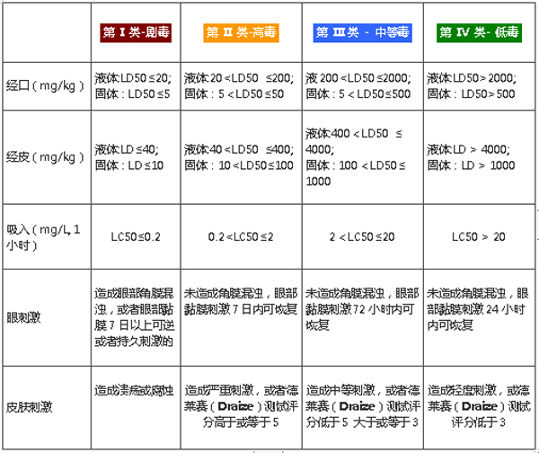 根据新的分级标准:眼刺激性和皮肤刺激性两项试验的毒性结果将不作为毒性分级依据。