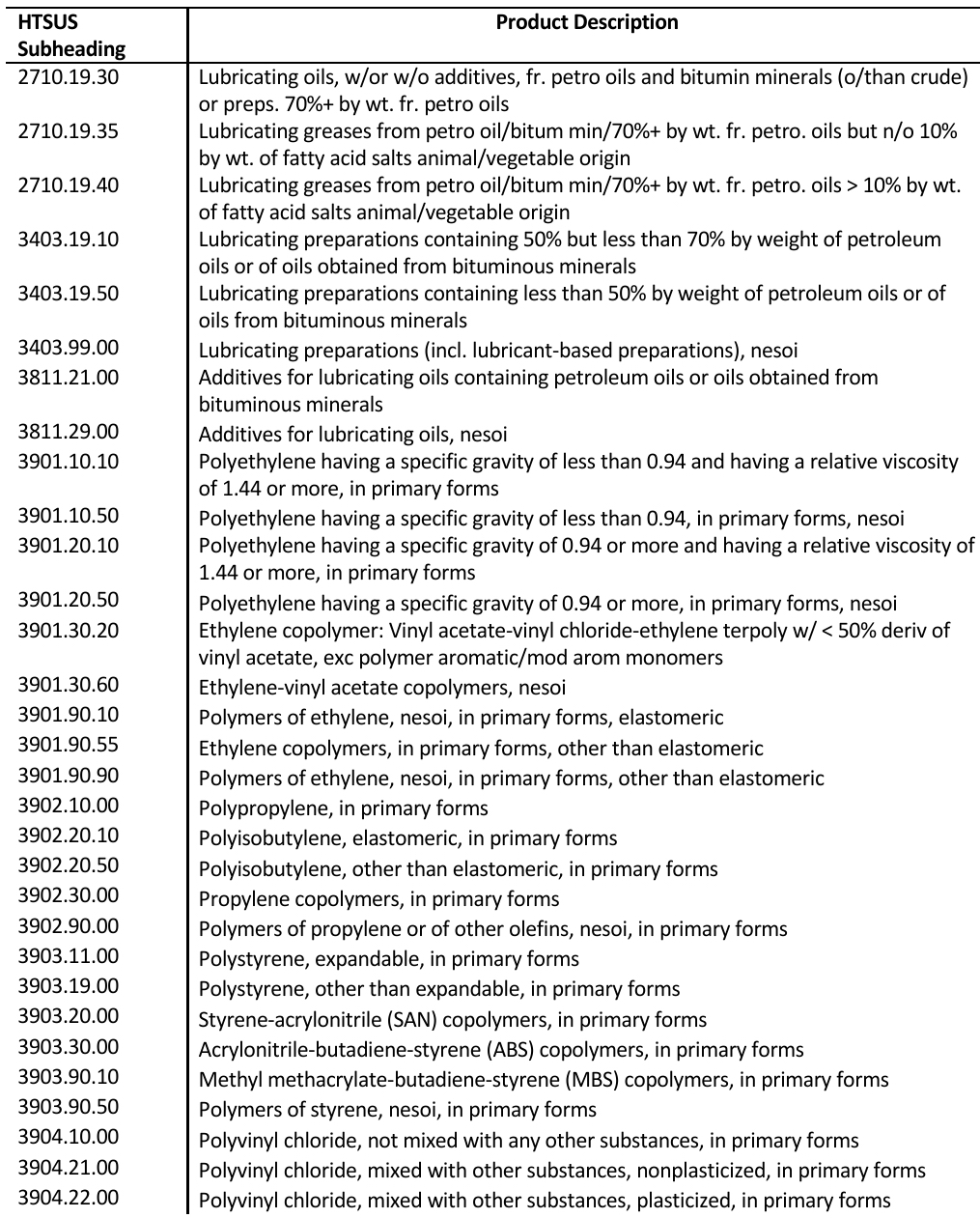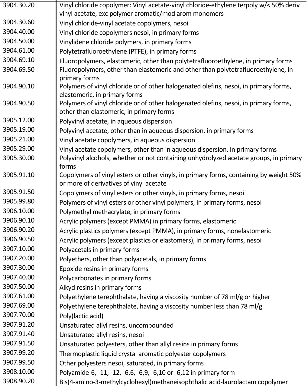 清单2中化工及相关商品如下: