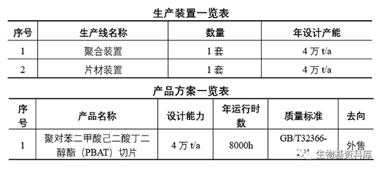 建成后,将形成年产可降解新材料(PBAT切片)4万吨的生产规模,生产装置和产品方案如下。