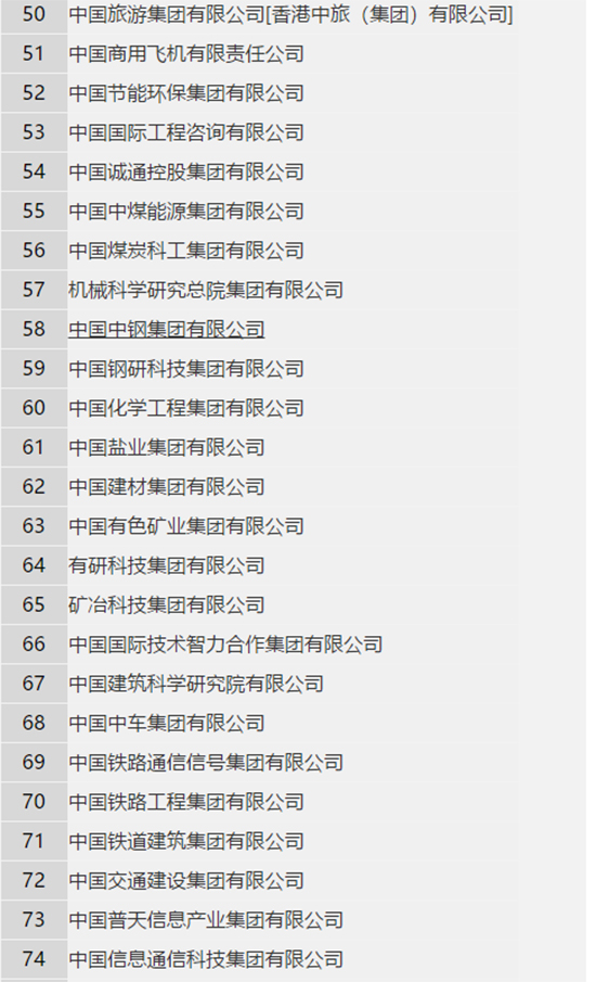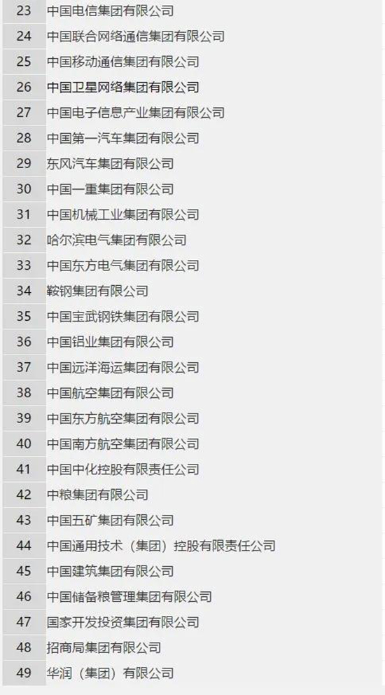 新增(第26位):中国卫星网络集团有限公司;