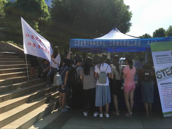 2017年9月14日,江苏省化学化工学会和省青少年科技中心共同组团参加由江苏省科协主办的2017年全国科科普日活动。科普活动围绕“破除愚昧,解惑释疑”主题,通过科普咨询、展览、科普实验、互动体验等形式服务公众,改变人们谈“化”色变的非理性社会现象,破除生活中流传的谣言,解答人们日常生活中的认识误区。并现场制作DIY手工香皂、叶脉书签等化学实验带来的乐趣,感悟化学之美。学会科普志愿者40余人参加和参观了整个活动。