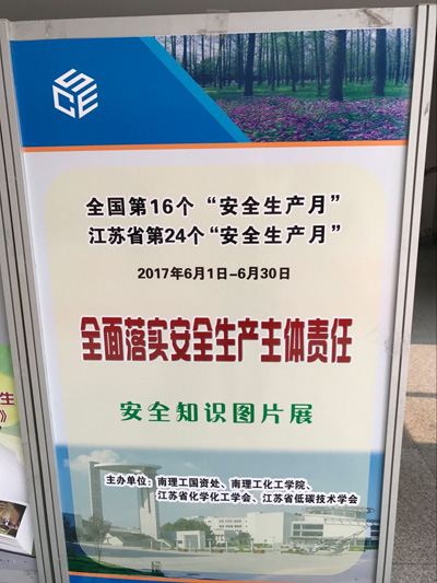 6月2日~30日,“安全发展,预防为主”的全国第十六个、江苏省第二十四个“安全生产月”活动中。学会科普工作委员会与南京理工大学化工学院共同主办了安全生产月主题展。共展出了安全知识图片宣传展板15块。此次展览共分安全宣传壁报,化学品运储使用安全须知,危险品安全知识等三大部分,生动形象的安全知识展览,吸引了大量过往行人及校内师生驻足观看,收到了良好的社会效益。