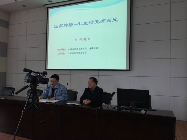 3月17日,由江苏省化学化工学会石油化工专业委员会主办的“远离肿瘤――让生活充满阳光” 科普报告会在中国石化扬子石化公司举行,会议邀请了解放军第97医院原院长曹志章主任医师从这五个方面对人们比较关心的肿瘤知识进行了科普解析,1、认识肿瘤、了解肿瘤;2、什么样的人群容易得肿瘤;3、怎么早期发现肿瘤;4、得了肿瘤应该怎么办?5、如何远离肿瘤,健康生活。并用具体的案例示范说明,公司近200位科技人员参加了此次报告会。