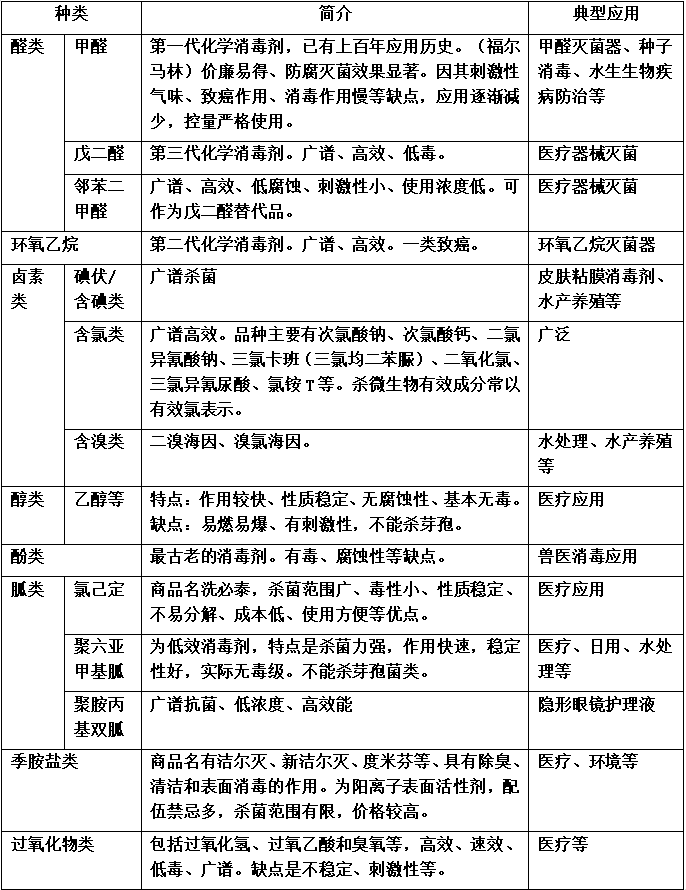 化学消毒试剂分类